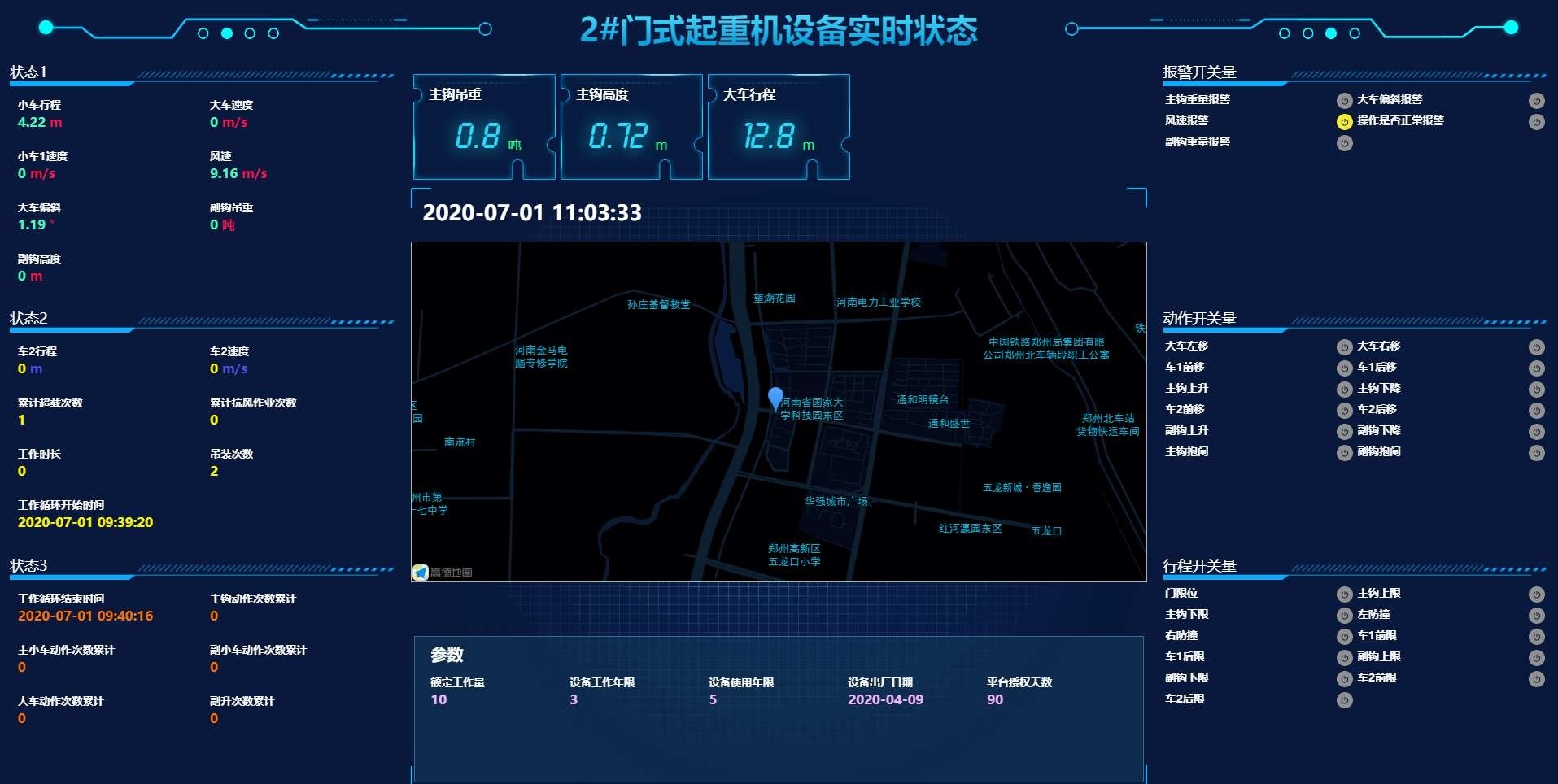 鄭州愷德爾科技借此次大會,推出自己的起重機安全監控系統及后臺管理系統,后臺管理系統可以實時顯示起重機的工作狀態,根據檢測到的各種數據,計算出累計起重量,有效工作時間,輔助工作時間,設備功效等,實現了施工管理人員對設備的實時監測,出現故障或者違章操作時,系統自動報警并記錄存儲該信息,以便工作人員事后查詢及追責。